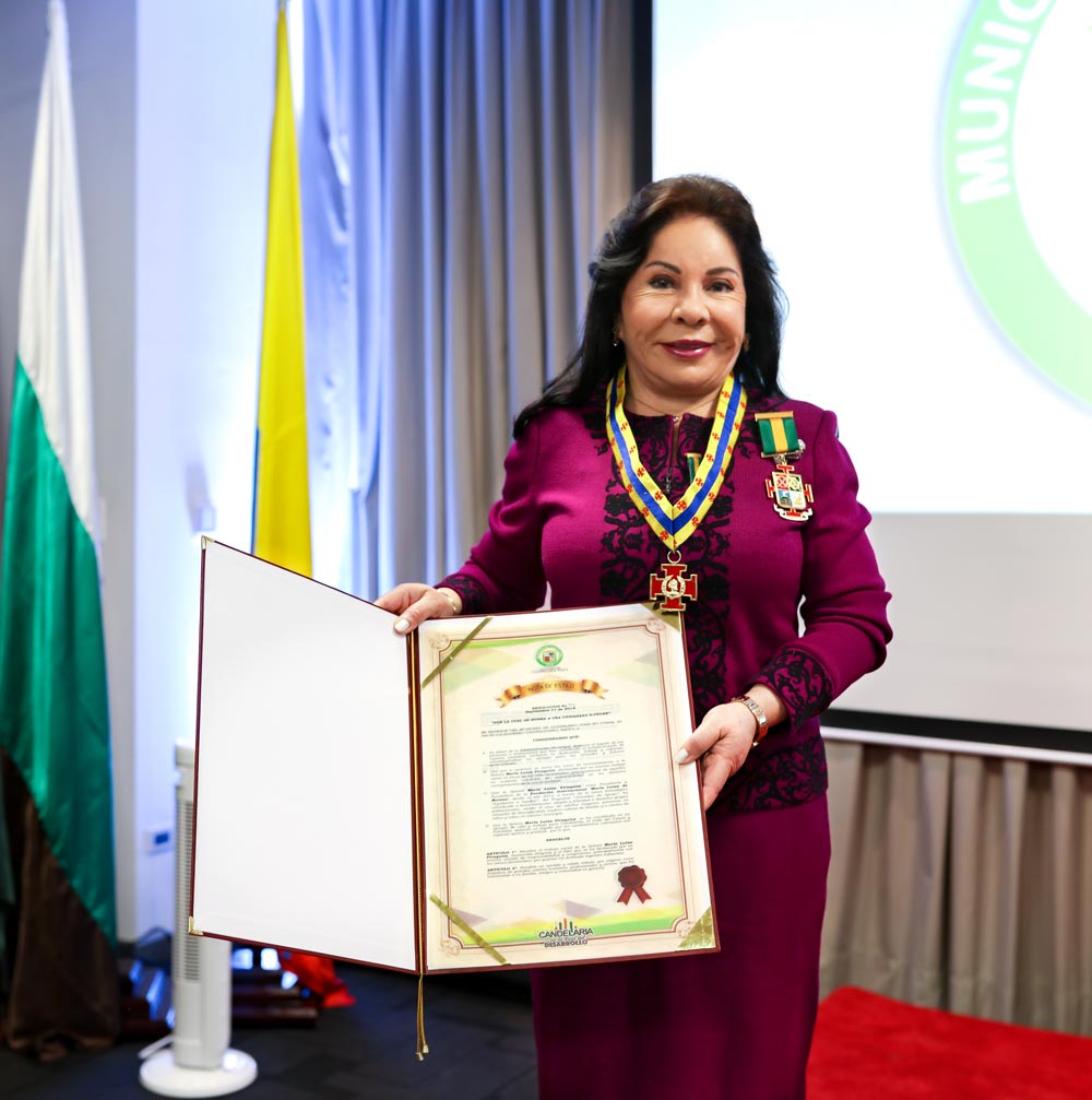 La Alcaldía de Candelaria, Valle del Cauca, honró a la Dra. María Luisa Piraquive como “Ciudadana Ilustre” del municipio por el enorme trabajo social que viene realizando con la Fundación Internacional María Luisa de Moreno en favor de los más necesitados; principalmente de aquellos en evidente condición de vulnerabilidad en los distintos corregimientos de la municipalidad.